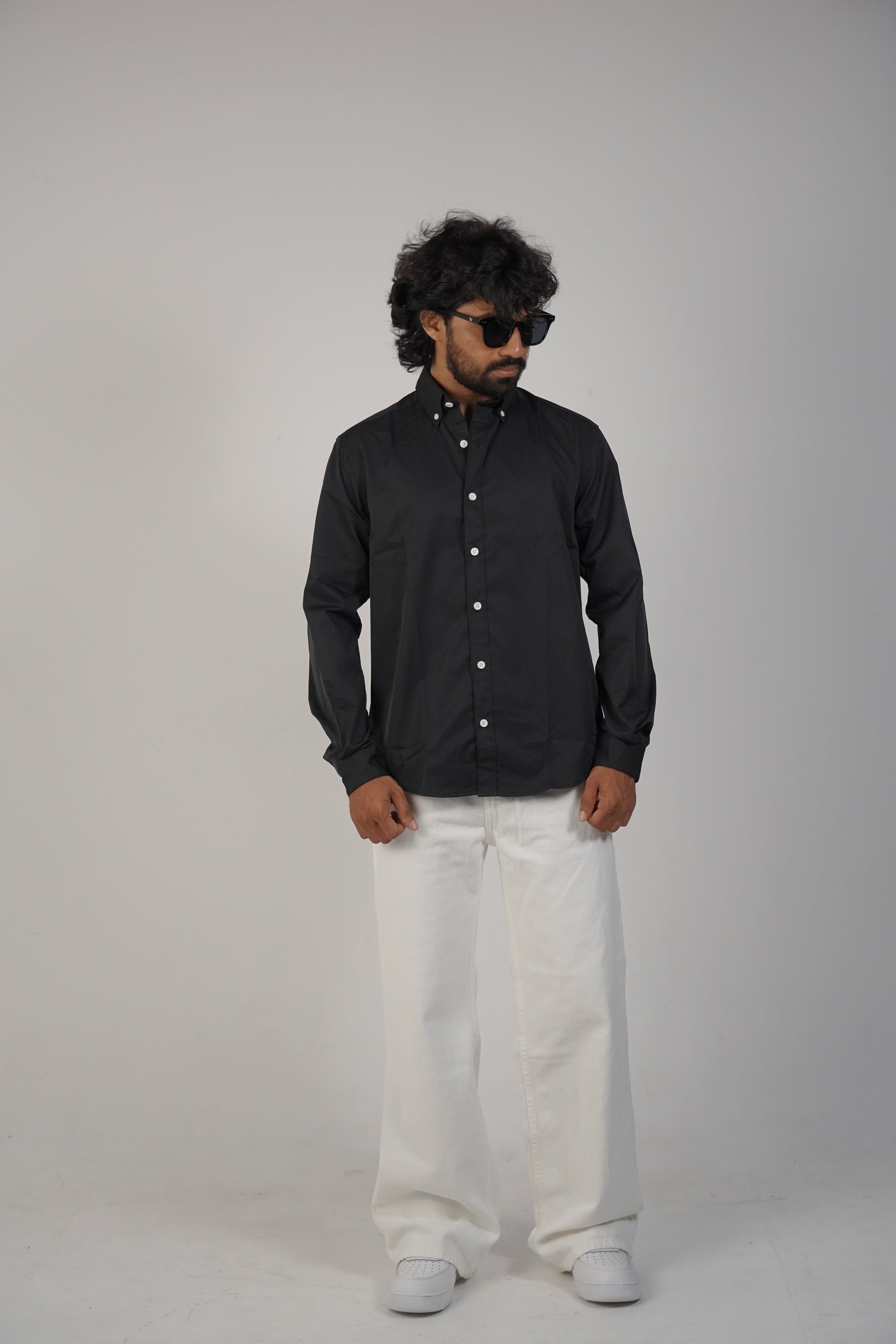 Black Blended Satin Shirt